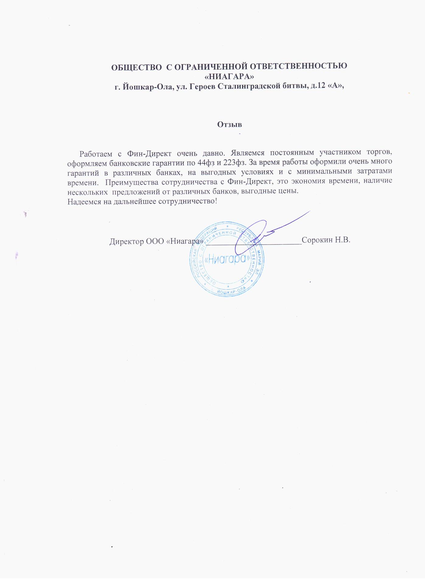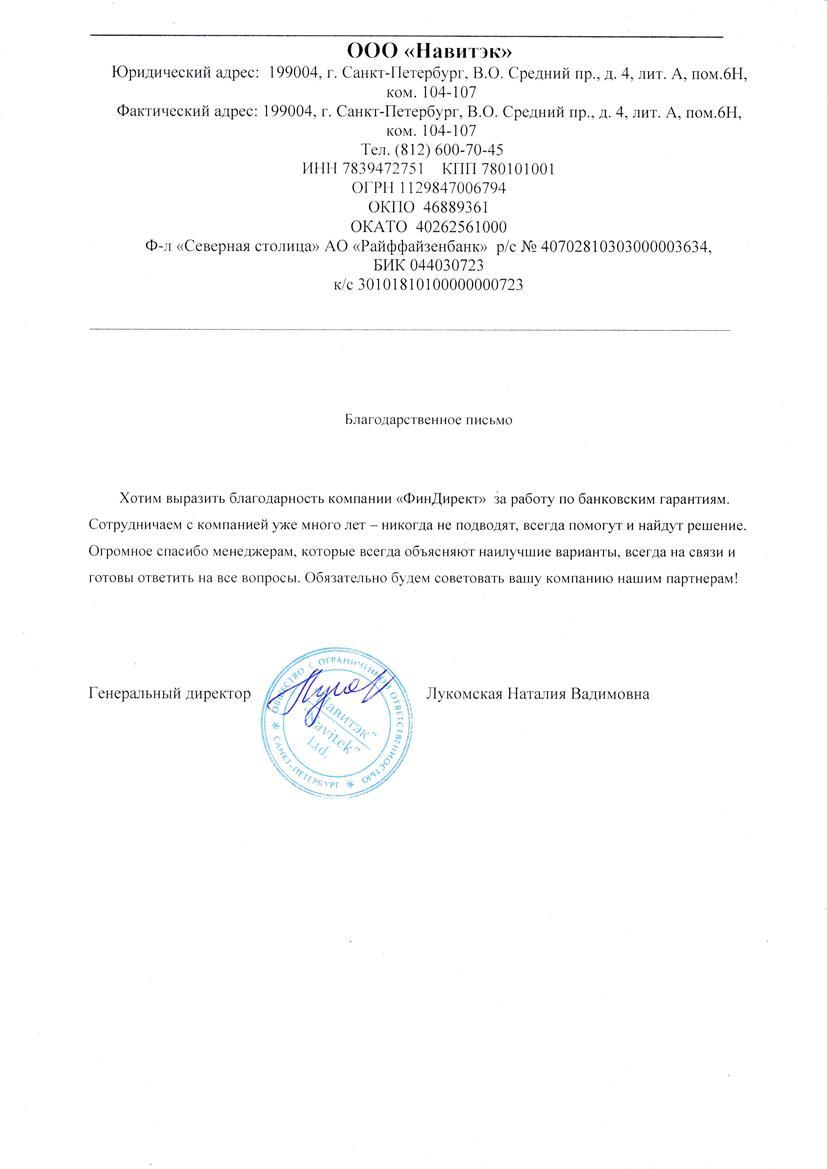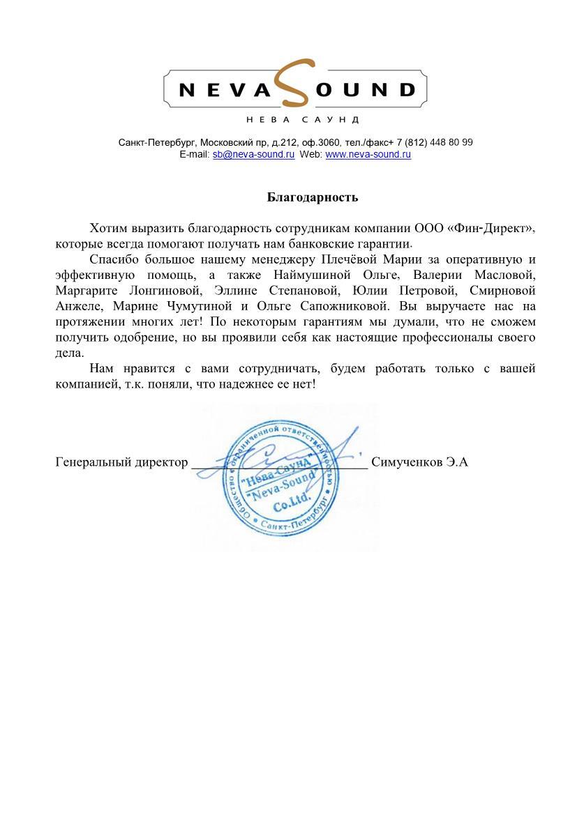 Спасибо сотрудникам ООО "Фин-Директ", а в особенности менеджеру Плечевой Марии за помощь в получении банковской гарантии.