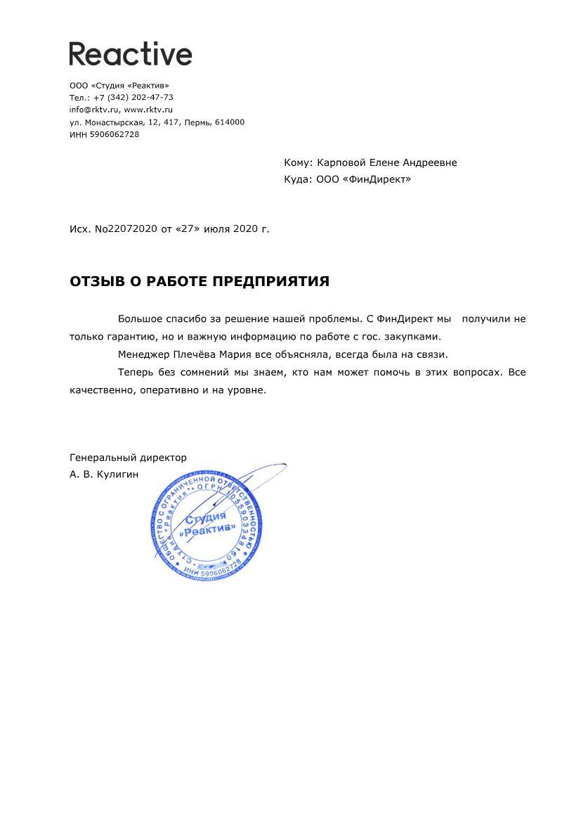 Большое спасибо за решение нашей проблемы. С Фин-Директ мы получили не только гарантию, но и важную информацию по работе с гос.закупками.